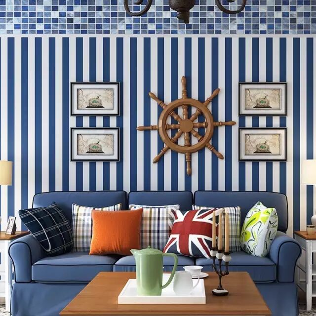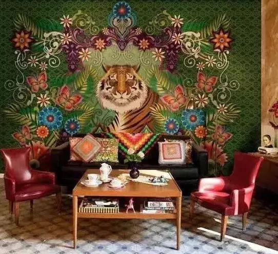 可以直接在原墙面贴墙纸或者绘画,配上沙发后,优雅大方。有小孩的家庭可选择贴纸类,防止孩子涂鸦。