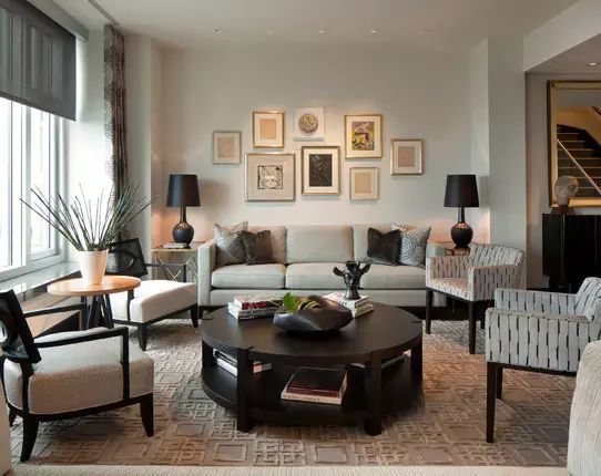 三幅分开式的挂法一般是三个尺寸一样的装饰画,平均布置于沙发后面。