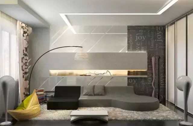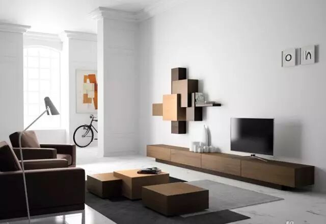▲凹凸不规则的背景墙,不会占据客厅本来的空间,而且也保留了背景墙的干净整洁,还具有一定的收纳作用。