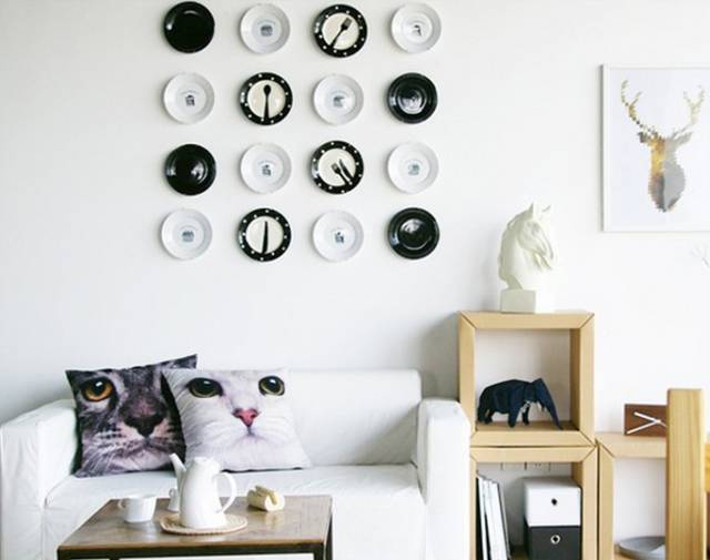 精致的挂盘装饰富有层次感,各种颜色各种图案和大小的盘子,呈现不同的风格,或典雅或俏皮。